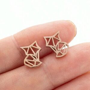Stainless Steel Cute Fox Ear Studs Rose Gold Origami Animal Earrings