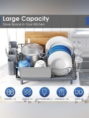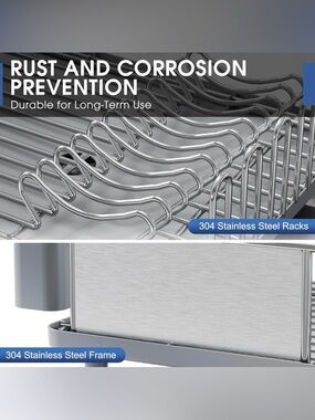 New Stainless Steel Dish Drying Rack - Large Capacity Kitchen Counter Organizer with Drain Board, Utensil Holder & Detachable Cup Shelf, 304 Surgical-Grade Rust-Proof Dish Drainer, Easy Assembly