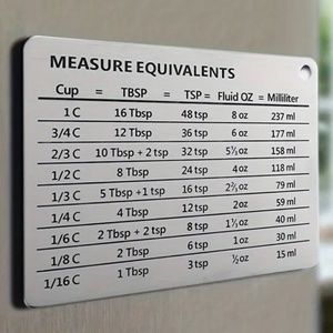 Stainless Steel Fridge Magnet with Measure Equivalents 4.3” x 3.3”
