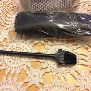 Very nice stainless steel garlic press. Also includes a small brush and some kind of silicone sleeve. Not sure what the sleeve is for. New in opened box, box has label and a little wear.