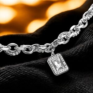- ๐ Design: Chunky links criss-crossed with sparkling zirconias and a mesmerizing cubic zirconia large pendant