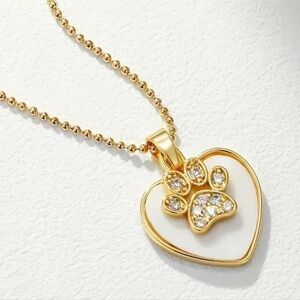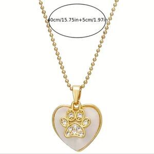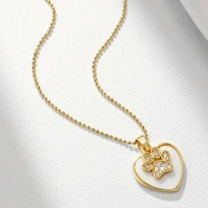 Stainless Steel Gold-plated Cubic Zirconia Inlaid Necklace with Pet Paw Heart Pendant: