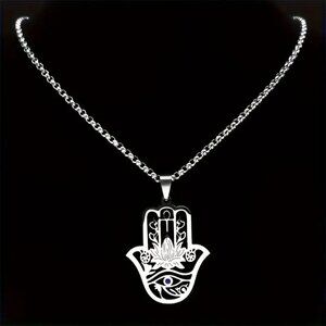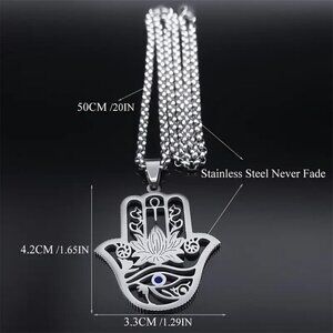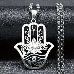 Stainless Steel Hamsa Hand Lotus Eye Ankh Pendant Necklace Protection Jewelry NE