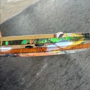 Stainless Steel Hawaiian Koa Wood Abalone Shell Bangle 8in