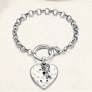 This elegant silver bracelet adds a touch of sophistication to any outfit. Perfect for any occasion. Stainless steel hypoallergenic and tarnish free. Heart chain link bracelet. Made to any size. Sizes vary from 6”-9”.