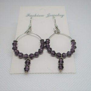 Handcrafted Hoop Dangle `Earrings with 4 mm Bicone Crystal Purple Beads & Daisy Spacer Beads