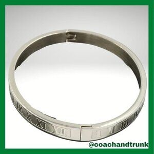 Stainless Steel Hypoallergenic Roman Numeral Hing Lock Bracelet NWT