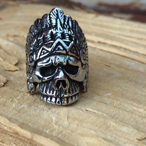 Stainless Steel Indian Chief Skull Ring Heavy Weight Biker