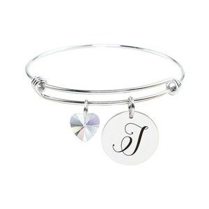 Add a subtle touch to your attire with this bangle featuring a disc engraved with an initial and a heart-shaped Swarovski Crystal