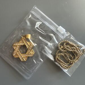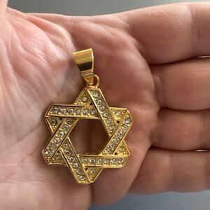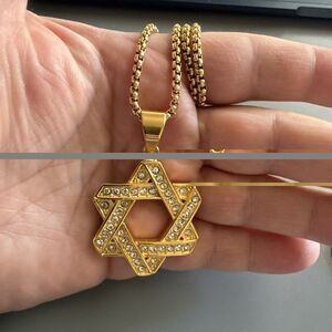 Stainless Steel Jewish Israel Star of David Necklace Bar Mitzvah Gold Zirconia