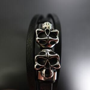 Stainless Steel Leather Bracelet w/ Skulls Accent – SBR-788