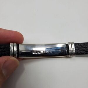Stainless Steel Leather Cuff Silver and Gold Tone Metal Bracelet
