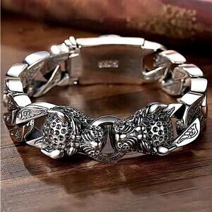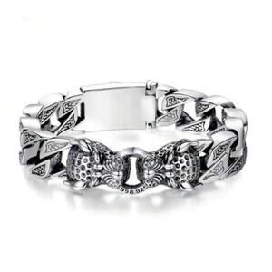 Sterling Silver plated Men’s domineering Cuban chain link hipster retro punk bracelet. Measures 22cm, 8.66”.