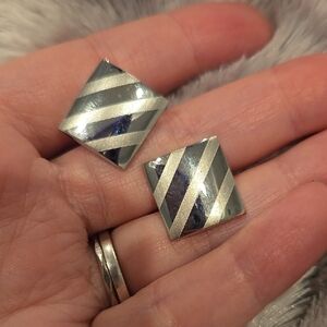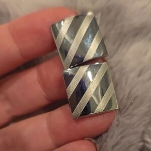 Stainless Steel Matte & Shiny Silver Cufflinks with Diagonal Stripes Brand New
