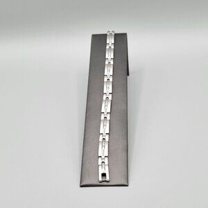 Stylish 8 inch silver tone stainless steel men's bracelet, making a durable and fashionable statement. Perfect gift for him.
