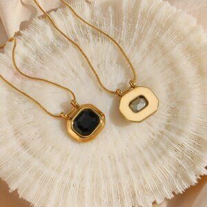 Stainless Steel Minimal Snake Rectangle Large Cubic Zirconia Necklace