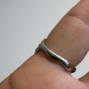 Modern and stylish ring featuring a smooth “molten metal” design with organic curves.