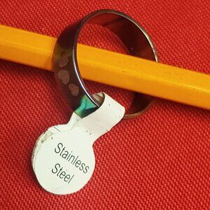 This type of ring is often associated with promise rings or wedding bands, commonly made from stainless steel due to its hypoallergenic properties, resistance to rust and tarnishing, and durability. The material requires minimal maintenance and is known for its strength, making it a suitable choice for everyday wear.