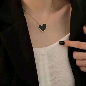 One Elegant Stainless Steel Necklace With Acrylic Inlay Iirregular black Heart-Shaped Pendant, Plated With 18k Gold, Suitable For Daily Wear Or Party, Perfect As A Gift For Women On Festivals .
