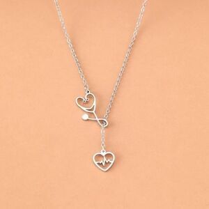 Stainless Steel Necklace with Stethoscope Electrocardiogram Pendant