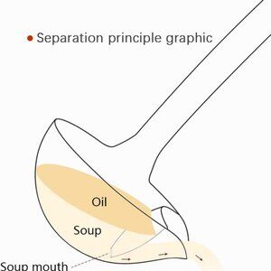 【Separation principle】:The oil and water are incompatible, and the physical property of the oil density is lower than the water density. The fat floats above the soup, and the outlet of the small hole is below the spoon. When pouring, the clear soup flows out from the lower hole first. So as to achieve the effect of oil-water separation.
