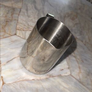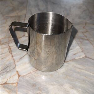 Durable stainless steel pitcher perfect for serving beverages. Sleek silver design adds elegance to any kitchen.