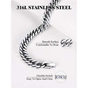 🧿➤ Link Chain Bracelet: 8mm Wide link chain bracelet for men,stainless steel jewelry, will never fade, simple and classic design, you can wear it everyday and at any accasion.