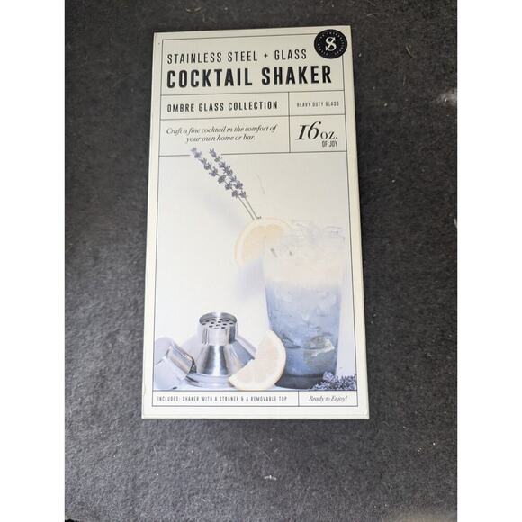 Stainless Steel Plus Glass Cocktail Shaker Includes Strainer 16oz A31