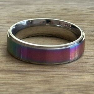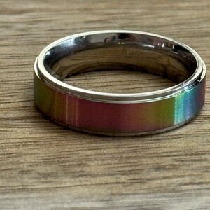 Stainless Steel Rainbow Band Ring Size 10. Very good preloved condition. Unisex