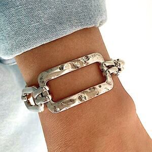 Stainless Steel Rectangular Bracelet Boho Hammered Chain Link