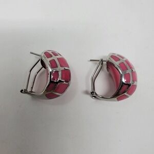 Stainless Steel Retro Pink Art Deco Vibe Caged Enamel Stud Pierce Earring