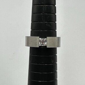Stainless Steel Ring Size 6.5 Channel Set Clear Princess Cut Stone Modern Band