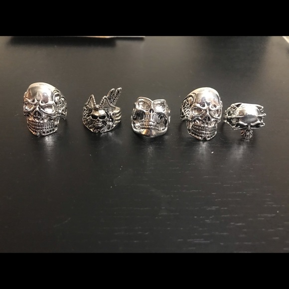 Brand new stainless steel biker style rings. Not sure what sizes. What you see is what you get. Look at pictures before purchasing. Thanks