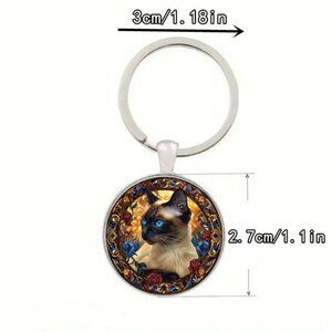 Stainless Steel SIAMESE CAT Keyring Keychain Accessory