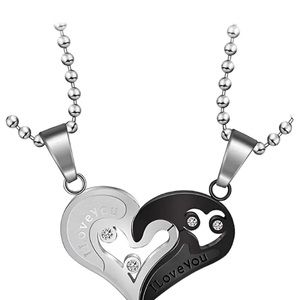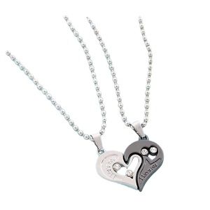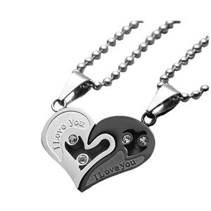 Stainless steel silver and black heart pendant necklace. Heart is two pieces that fit together. Rhinestone accents. Thick chain for a unisex style. NWOT!
