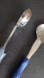 Set of two stainless steel skimmers with blue and gray handles. Perfect for the upcoming holiday party season. Gently used; 4oz (118ML) and 2oz (59ML).