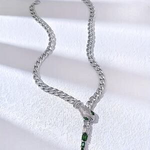 Stainless steel sterling silver plated snake, viper Cuban chain link choker. Comes in all sizes also available in gold.