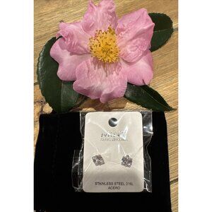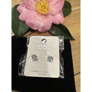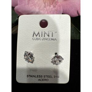 Mint Stainless Steel Earrings. Cubic Zirconia center with square shape and silvertone back design. Classic post backs. New in package with velvet gift pouch included. Really sparkly! From a smoke free home. Thanks for shopping with me.