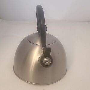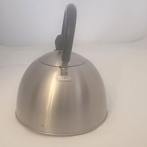 Stainless Steel Teapot Whistle 1 qt Domed Vintage Retro Style black hardware