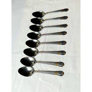 Stainless Steel Teaspoons Ribbed Handle Gold Accent Set of 8 Modern Timeless