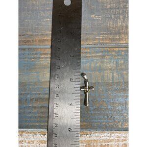 Stainless Steel Two-Tone Cross Pendant With Gold Accent