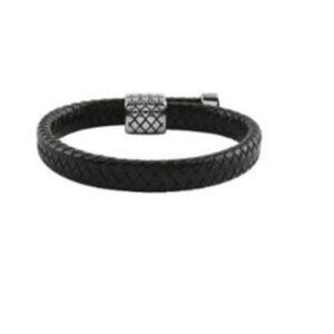 Stainless Steel and Black Leather Bracelet - 8.5 inches