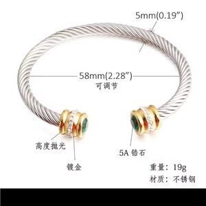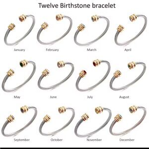 Stainless steel 12 month Birthstone Expandable Wire Open Cuff Adjustable Twisted Cable Bangle bracelet