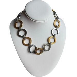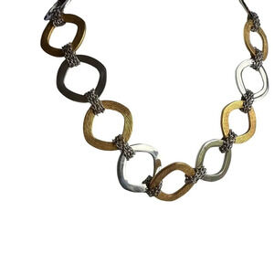Stainless steel Brushed Gold-Tone and Silver-Tone Square Links Necklace