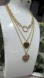 Elegant gold necklace set featuring heart pendants with a touch of pink. Perfect for adding a chic accent to any outfit.