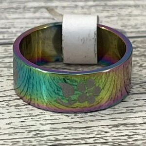 Stainless steel band Ring US size 6/size 17 UK rainbow with flower design