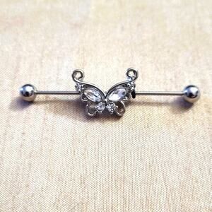 Stainless steel crystal butterfly industrial ear piercing