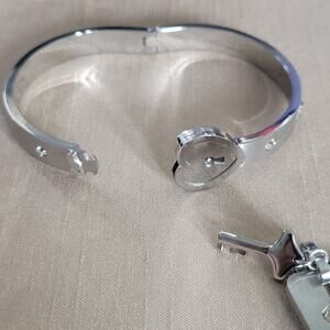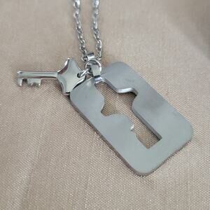 Stainless steel locking silver bracelet with key necklace and heart shape lock
