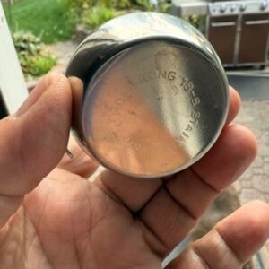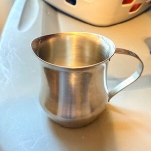 This is a vintage 2 3/8 " made in Hong Kong mini creamer or frothing pitcher. It has open handle...stamped on the bottom and in excellent condition. #stainlesssteelminimug #stainlesssteelcreamer #vintagecreamer #vintagestainlesssteel #hongkongstainelesssteel #hongkongminicreamer