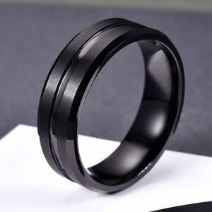 Stainless Steel Black Wedding Band Street Style Unisex Ring